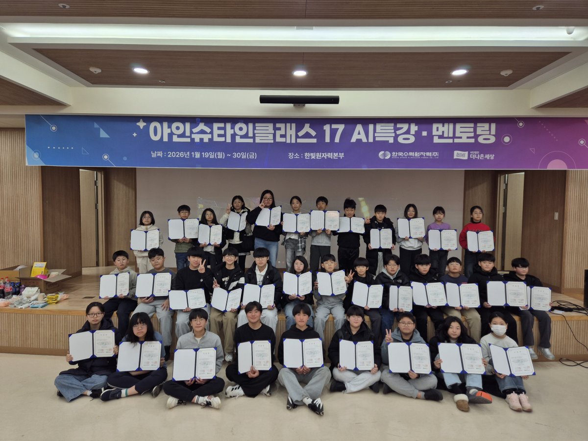 (사)더나은세상이 주관하고 ㈜한국수력원자력과 함께한 AI 교육 멘토링 프로그램 「2026 아인슈타인클래스 17기」가 성과공유회를 끝으로 성공적으로 마무리되었습니다.